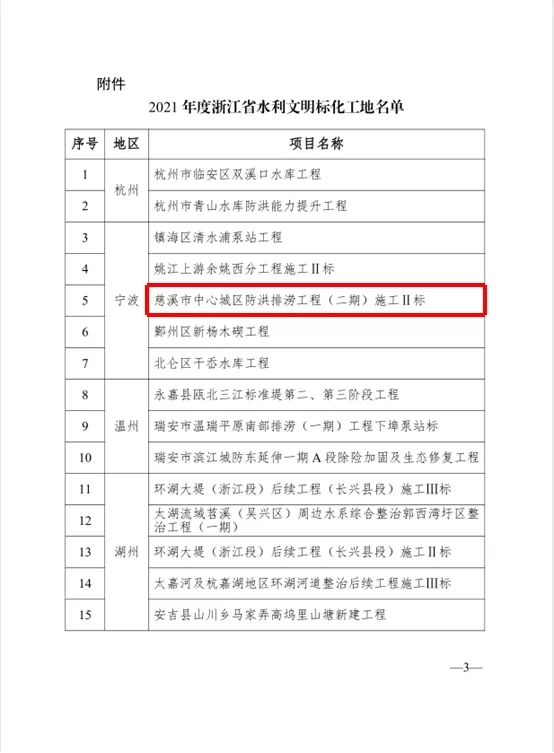 今日,浙江省水利厅办公室公布了2021年度浙江省水利文明标化工地名单。由宁波龙元盛宏生态建设工程有限公司承建的慈溪市中心城区防洪排涝工程(二期)施工II标被评为“浙江省水利文明标化工地”之一。![]() ![]() 慈溪市中心城区防洪排涝工程(二期)Ⅱ标段主要由二座新(改)建闸站工程和五座水闸程及配套五座桥梁组成。 二座闸站分别为西五灶江闸站和漾山路江闸站。西五灶江闸站泵站规模为8m2/s,采用3台900GQS-160-110双向潜水贯流泵方案,单泵流量为2.67m3/s,水闸规模为净宽30m。漾山路江闸站改造为双向12m3/s的泵站,采用3台1200QZB-160-185立式潜水轴流泵,单泵流量为4m3/s。 五座水闸分别为西四灶江闸、西六灶江闸、鸣山路江闸、新庵江闸、西三灶江闸,水闸规模为20m~30m,水闸型式均采用底轴驱动翻板门。 修建配套桥梁五座,分别为西三灶江南桥、西四灶江南桥、西五灶江南桥、西六灶江南桥、鸣山路江南桥。本工程等别为Ⅲ等,主要建筑物级别为3级。 该工程建设工期为540日历天,合同造价9586.63万元,工程防洪标准为50年一遇,排涝标准为20年一遇,24小时暴雨24小时排出。 ![]() |